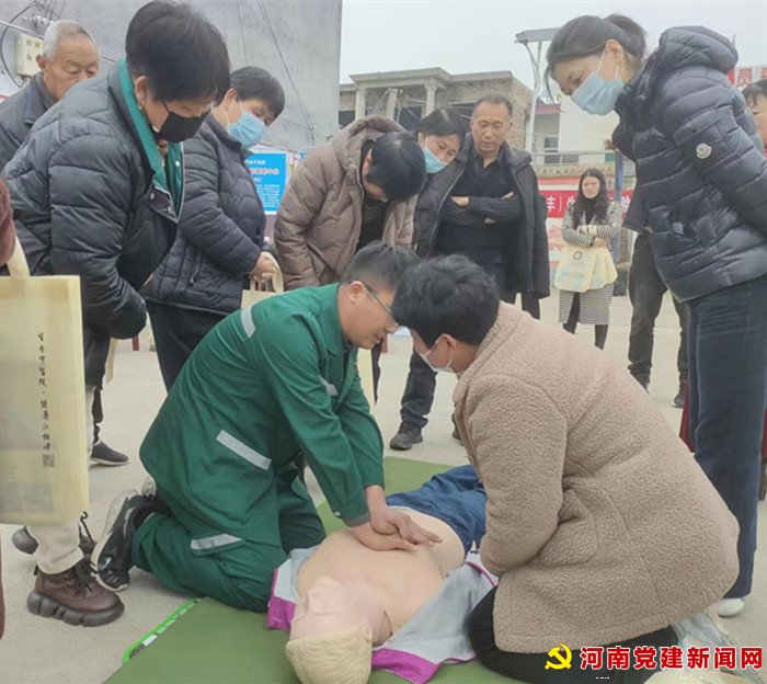 在义诊活动现场,还开展了家庭急救技术示范讲解,并让群众参与实践练习,受到了良好宣教效果。由宝丰县天马百姓舞台演艺中心开展的“大力弘扬优秀传统文化 建设国家级说唱文化(宝丰)生态保护试验区”宣传活动也来到现场助力,该中心负责人王玉珍及戏曲爱好者演唱了戏曲选段、戏曲联唱等,增加了义诊现场热闹氛围。