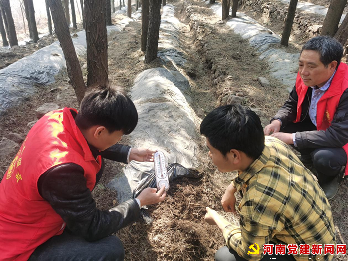 “赤松茸最适宜的温度是15-26度,温度高于30度就要揭膜通风,我们每天有两名村干部不定时来查看。这里是正在修的排水沟,避免雨后积水。”姬家村党支部副书记仝聚合介绍道。