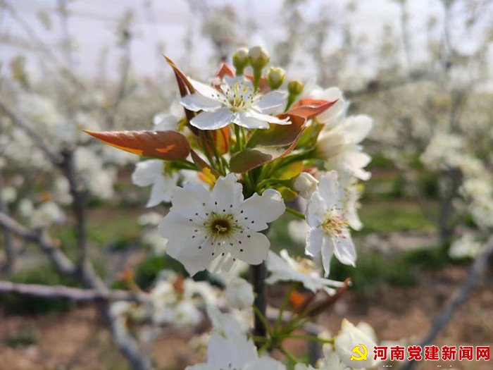 河南党建网讯(李万全 通讯员 史军伟 郭文华) 春游梨花海,香润虎狼爬。又是一季春正浓,百花争艳时,在昔日荒凉的宝丰县虎狼爬岭上,如今被5000亩梨树园和桃、葡萄等果树“抢占”。3月30日上午,记者在这里看到,白的梨花、红的桃花把荒岭变成了花海,前来赏花、品尝购买秋月梨的人们络绎不绝。