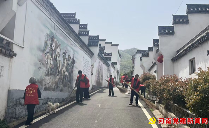 河南党建网(李万全 马文忠 李婉婷 魏瑞鑫 王少军)春色染尽芳菲日,乡村满目着新彩。4月6日上午,走进叶县辛店镇南王庄村,绿树成荫,村居错落有致,房前屋后花草树木生机一片,道路两侧志愿者们正拿着扫帚、铁锹,清扫枯草和废弃物。