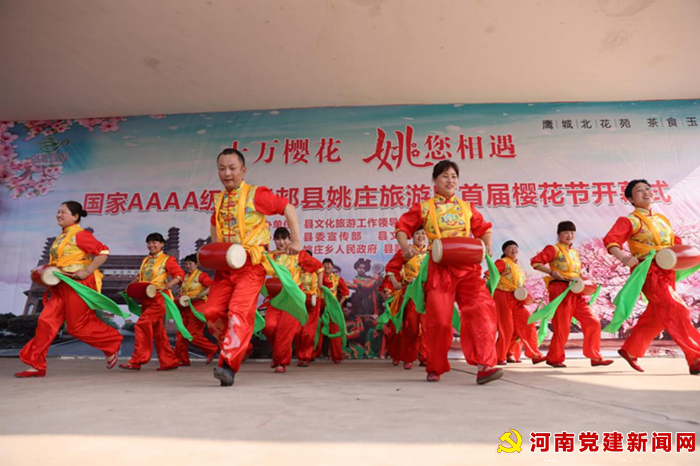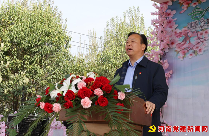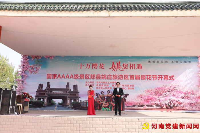 姚庄回族乡党委书记雷巍介绍樱花节活动安排,郏县政协主席张贯钊、平顶山市文化广电和旅游局局长徐渊分别致辞,郏县县委副书记丁国浩宣布“国家AAAA级景区姚庄旅游区首届樱花节”开幕。