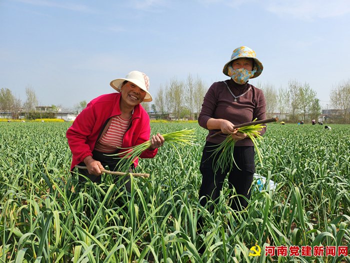 河南党建网讯:眼下正值蒜薹采收的时节,4月9日,走近宝丰县赵庄镇官衙村的数百亩蒜田,一阵阵蒜香扑鼻而来,春日和煦的阳光下,三三两两的村民背着采摘袋穿梭其中,忙着抽薹、捆扎、装车,一派蒜薹丰收的忙碌景象。