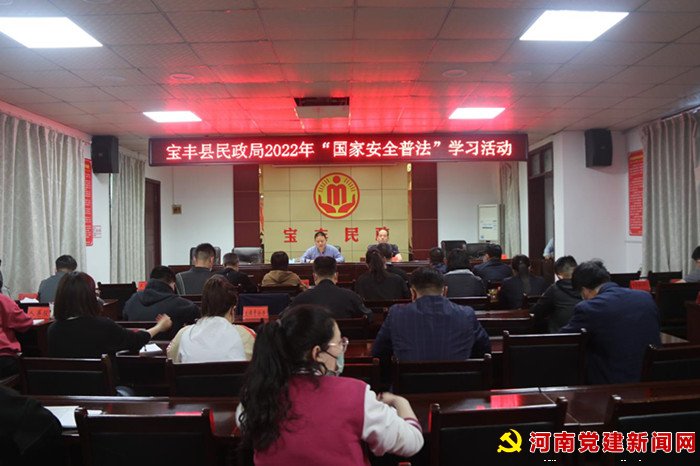 河南党建网讯(李万全通讯员魏彦惠 王振武)为深入开展安全法治宣传教育工作,迎接国家第七个全民国家安全教育日。4月12日下午,宝丰县民政局组织召开2022年国家安全普法会议,全体干部职工共同学习《中华人民共和国国家安全法》等内容。