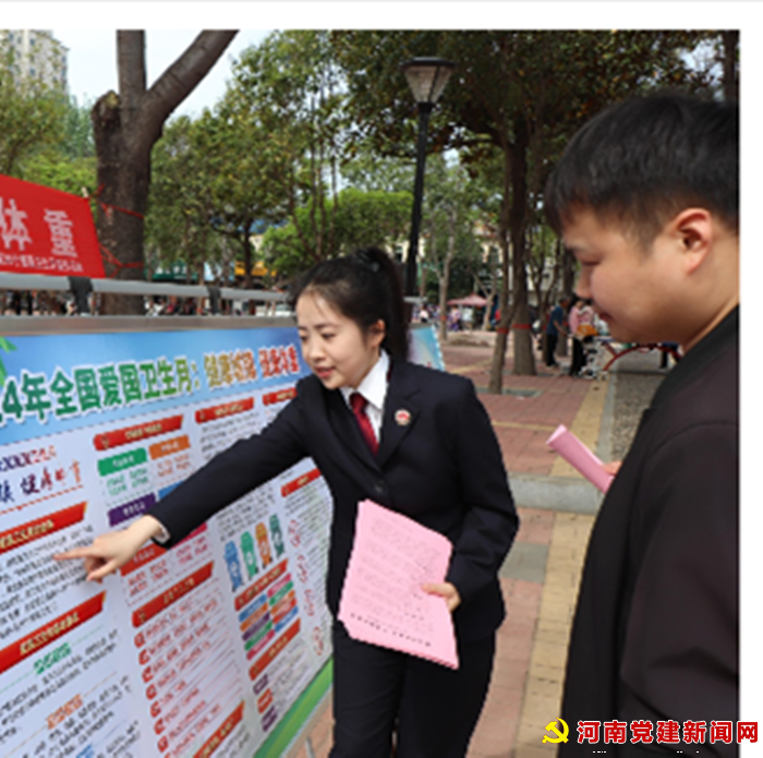 河南党建网讯:2024年4月是第36个爱国卫生月,今年的主题为“健康城镇 健康体重”。为充分动员广大人民群众积极参与爱国卫生运动,改善生产生活环境,进一步倡导文明健康社会风尚,建设健康美丽宜居家园,4月17日,宝丰县检察院在新世纪广场开展爱国卫生月健康科普宣传活动。
