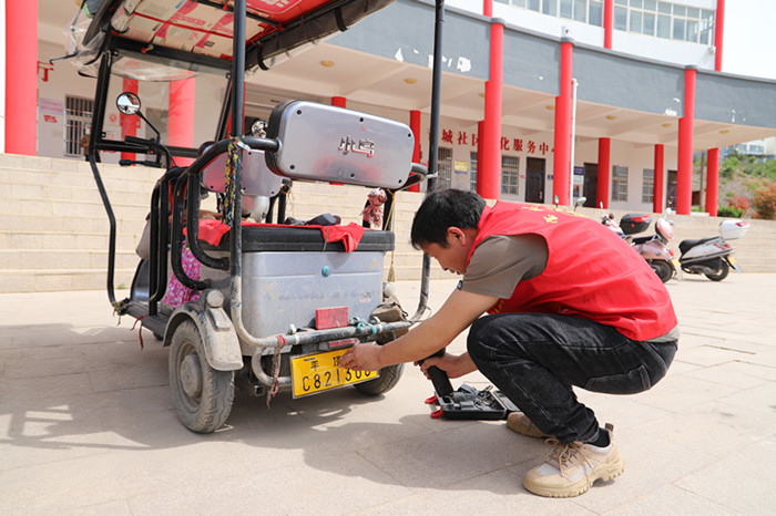 大营镇结合“五星”支部创建、文明城市创建等工作,通过大喇叭、小音箱、微信群等宣传方式,积极向辖区广大居民推送全镇电动自行车集中上牌的时间、地点、流程、所需材料等相关信息。以“便民、利民、惠民”为出发点和落脚点,下沉服务、窗口前移,每村设立1个牌照安装点,耐心为群众答疑解惑,有序做好电动车上牌资料填报、审核、拍照、挂牌等,高效推进电动车上牌工作。