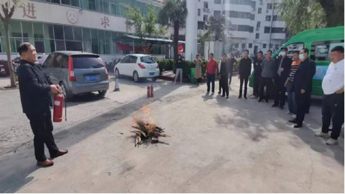 在演练现场,由宝科公司安全经理梁俊峰同志为大家讲解防火要领、安全消防常识、如何扑救初期火灾及灭火器的使用方法等知识,并现场演示如何用灭火器进行灭火。
