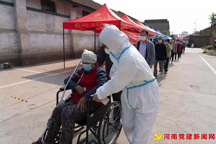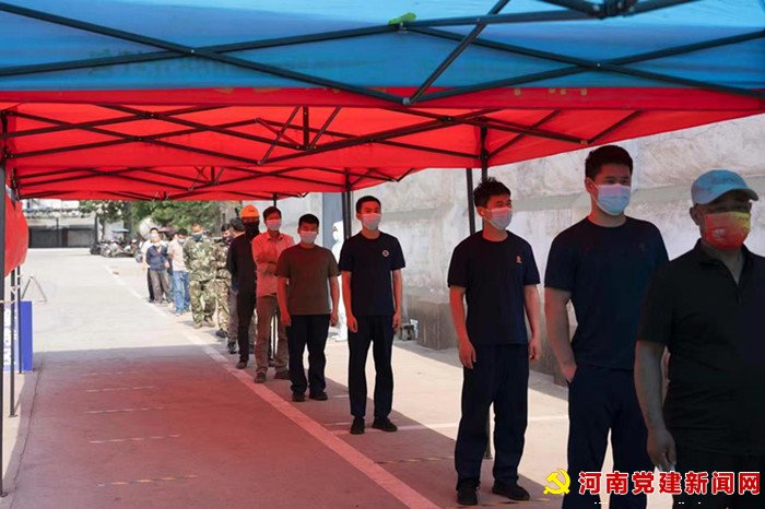 河南党建新闻网讯(李万全通讯员岳旭喆)“大家先到我这里登记个人信息,二十人为一组,带好口罩,保持间隔,把身份证拿在手里。”5月7日上午,在春风路老面粉厂院内,宝丰酒业党员志愿者袁菲菲正在带领宝丰酒业志愿者协助城关镇南关社区工作人员开展核酸检测。