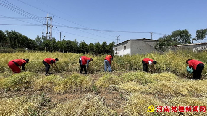 河南党建新闻网讯(李万全通讯员杨海楠)眼下正值油菜收割的季节,5月7日,在宝丰县李庄乡祁家村祁明军的油菜地里,一抹红色格外引人注目。原来这是李庄乡团委组织青年志愿者帮助困难群众抢收油菜,他们顶着骄阳、挥舞着镰刀,忙碌而有序。