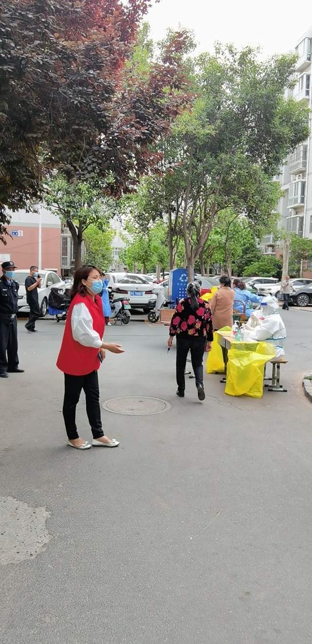 5月7日文科党支部吕晨虹老师在社区做志愿者,负责维持核酸检测秩序