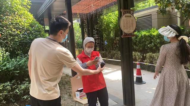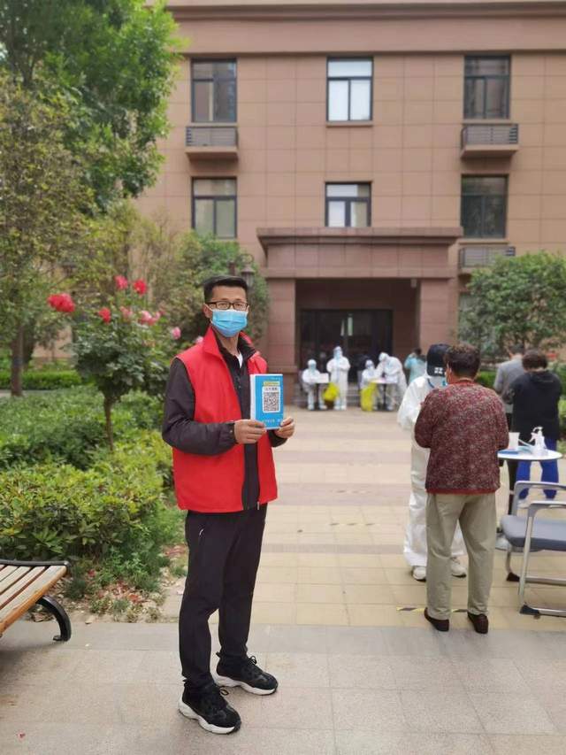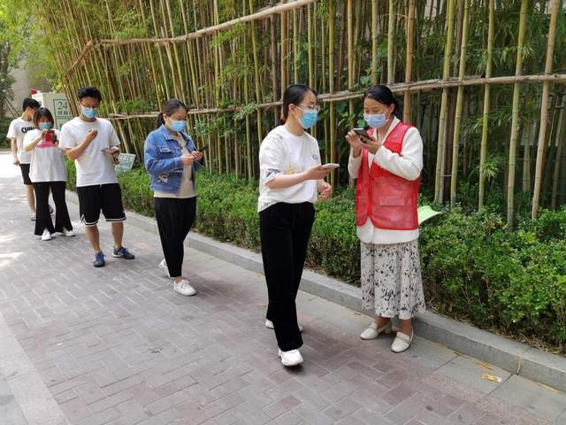 5月7日文科党支部张媛老师在泰苑社区金晨嘉园小区做党员志愿者,负责维护秩序和扫码工作。帮助上网课的师生们走绿色通道,保障了师生核算检测的高效性。