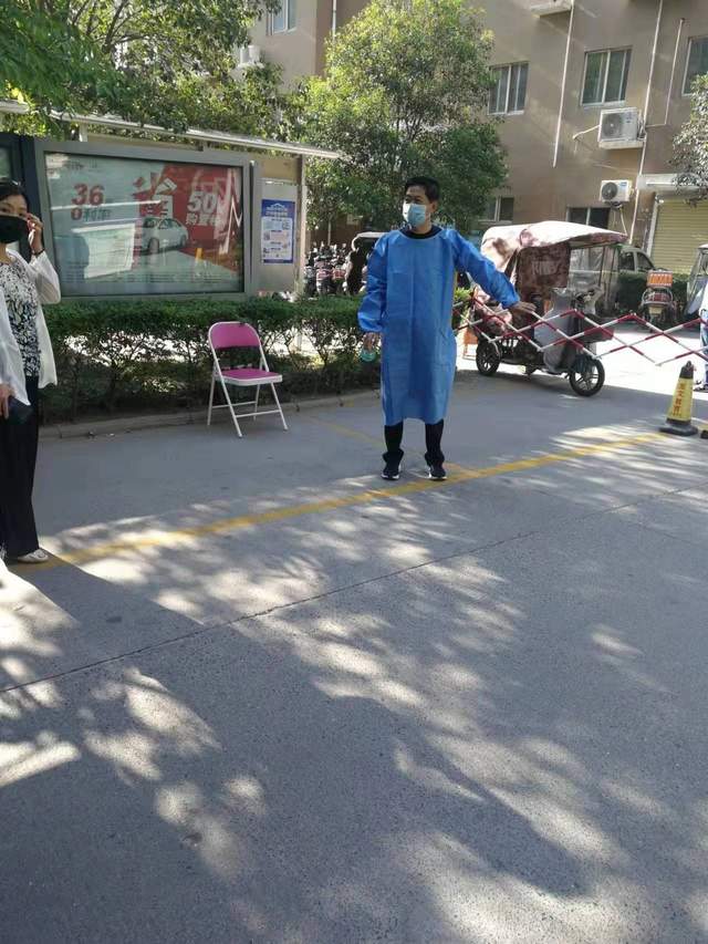 5月9日郑州七中党建专干崔智奇在金水区广电社区开展疫情防控志愿者服务社区做志愿者