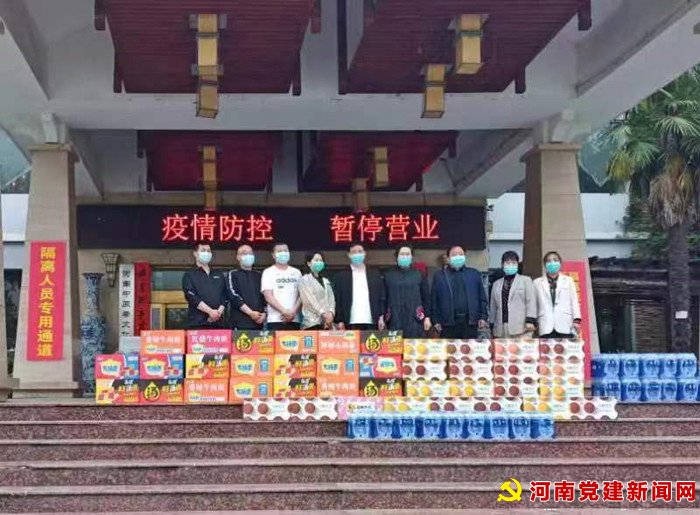 河南党建新闻网(李万全马进伟何建伟)5月12日上午,鲁山县政协副主席、民革鲁山支部主委闫同来带领支部党员杨广州、艾增敏、史夏蕊、张亚鸽等来到鲁山县下汤镇皇姑浴疫情防控隔离点、温泉度假村隔离点、西许庄村村委会等地,慰问奋战在抗疫一线的医护工作者、社区干部和疫情防控志愿者,给他们送去了大米、食用油、牛奶、矿泉水、方便面、面包、火腿肠等价值5000元的保障物资。