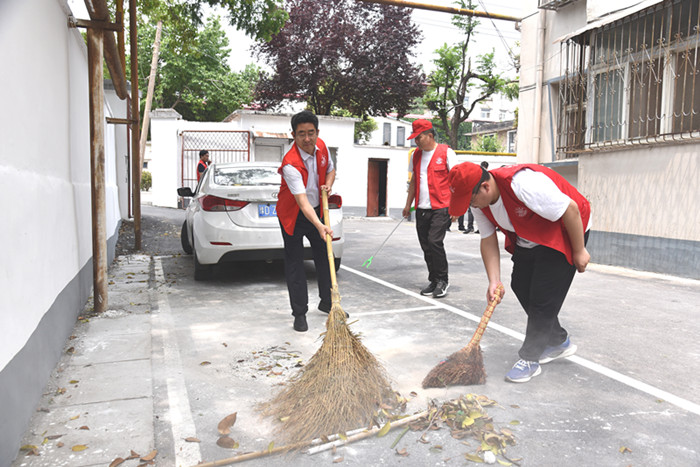 河南党建网讯:为进一步打造干净整洁、文明有序市容环境,加快创建全国文明城市步伐,5月18日上午,舞钢市委副市记、市长朱志骞与政府办志愿者来到该市第一小学西侧小区开展环境卫生清扫活动。