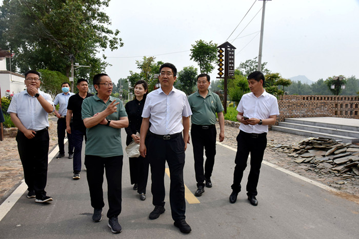 初夏的尹集镇大刘庄村小寨沟风光旖旎,月季花开正艳。 依靠得天独厚的优良生态资源,该村围绕旅游主线,大力发展休闲康养、文旅娱乐产业。朱志骞陪同卢水生一行徒步查看村容村貌,详细了解当地乡村旅游发展现状和民宿发展规划。