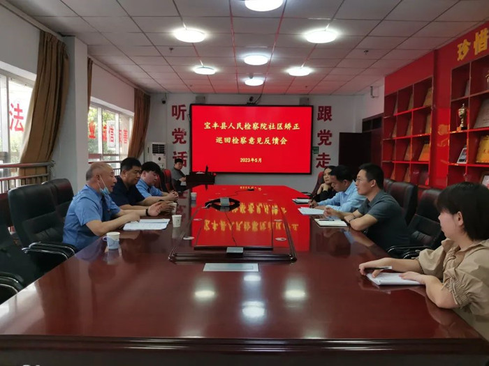 河南党建网讯:5月16日,宝丰县检察院在县司法局召开社区矫正巡回检察意见反馈会。县检察院党组副书记、副检察长张学奇,县司法局党组书记、局长牛志刚,巡回检察组成员及社区矫正机构相关人员参加会议。