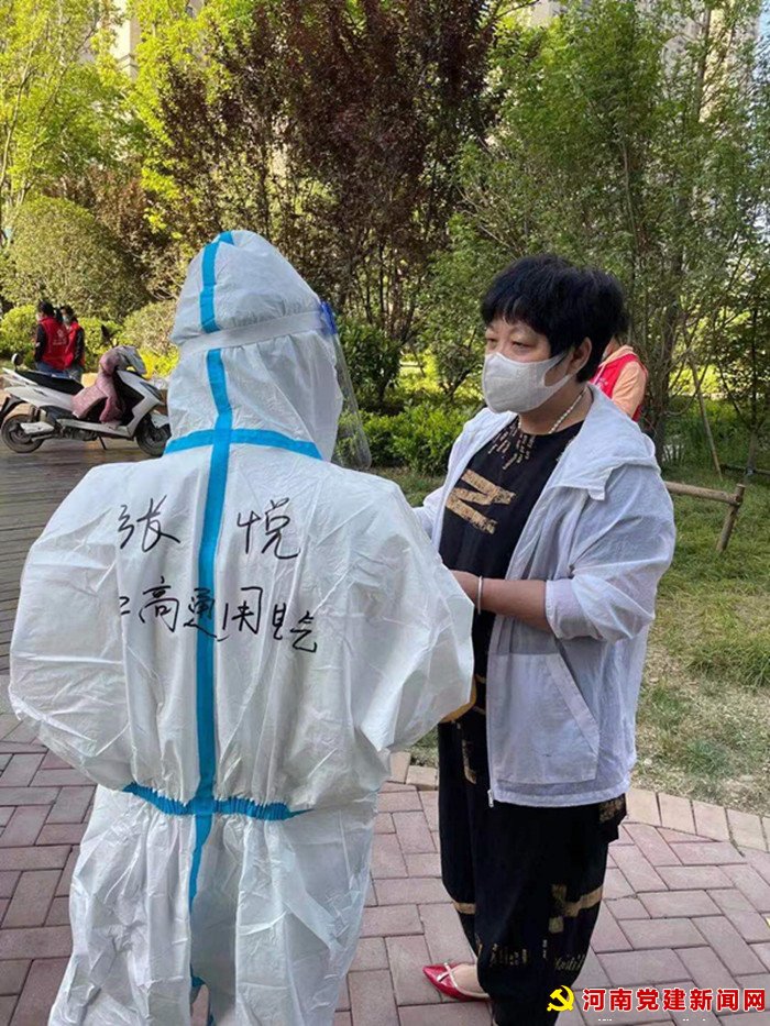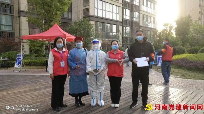 “心中有爱,眼里有光,不忘初心,无问西东”。在平顶山疫情严重、林溪美地采样点人员不足时,她不惧艰险毅然挺身而出,充分发挥共产党员的先锋模范作用,积极参与社区疫情防控,默默奉献着自己的一份力量,用实际行动践行了一名普通共产党员的初心和使命,和社区工作人员一起为社区构筑了一道防疫的坚实屏障。( 作者:余海军)