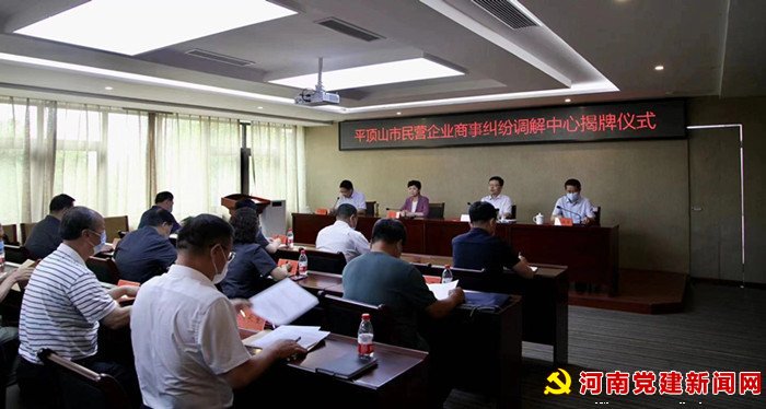 河南党建网讯(李万全陈运发 康晓来)6月9日下午,平顶山市民营企业商事纠纷调解中心在市企业家之家揭牌成立。市委常委、统战部长刘颖,市中级人民法院党组书记、院长王辉出席仪式并讲话,市委统战部副部长、工商联党组书记高宏勋,市司法局党组书记、局长陈建忠参加揭牌仪式。