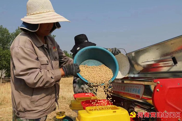 河南党建新闻网讯(李万全 通讯员:陈亚沛)“四行玉米,六行黄豆,这种套种模式,不仅能稳定玉米产量,还能多收一季黄豆。”“同时种植方便苗前除草剂的使用,可以减轻劳力,也能减少对苗株的伤害。”6月11日,在宝丰县大营镇段寨村铁匠庄的家庭农场里,负责人郑召兵在田间地头与机播员交流着种植经验,正将100亩麦茬地按照“4+6”复合种植模式,赶时节种植,这是他尝到了套种甜头后的第二年复种。