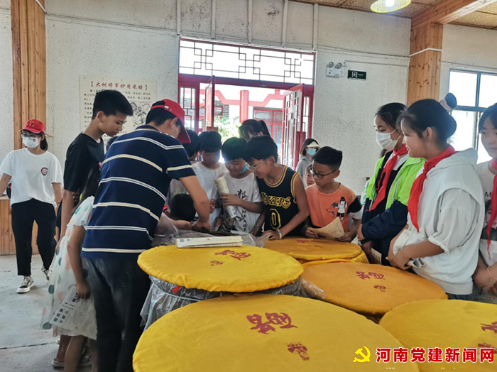 “冯异故里名扬神州,翟集陈醋香飘万里。我们李庄是一个美得让人吃醋的乡村啊!”伴随着讲解员的介绍,6月13日,宝丰县李庄乡翟西小学和杨庄小学的30余名少先队员兴致勃勃地踏入了中原米醋非遗体验中心,开启一场丰富有趣的研学之旅。