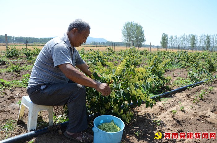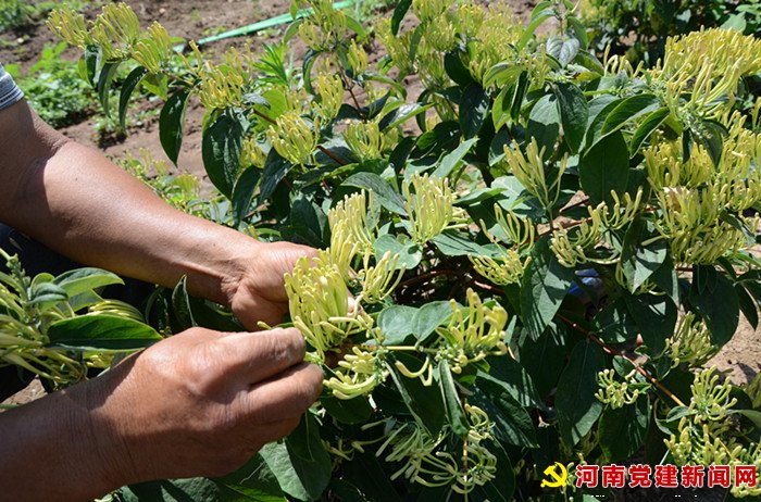 河南党建新闻网讯(李万全通讯员柳真真 王向丽)“我种的是湘蕾五号,俗称‘花王’,具有花蕾齐、花质优、产量高的特点,它的产量是普通金银花产量的5-10倍。今年是我定植后的第二年,亩产干花大概在100公斤左右,听说市场价大概在150元/公斤,估计收入30万元没问题。以后进入盛花期,产量还会逐年增加……”6月14日,在宝丰县闹店镇贾寨村中药材种植基地里,种植户张少峰算着今年和往后的经济收入,满怀信心。