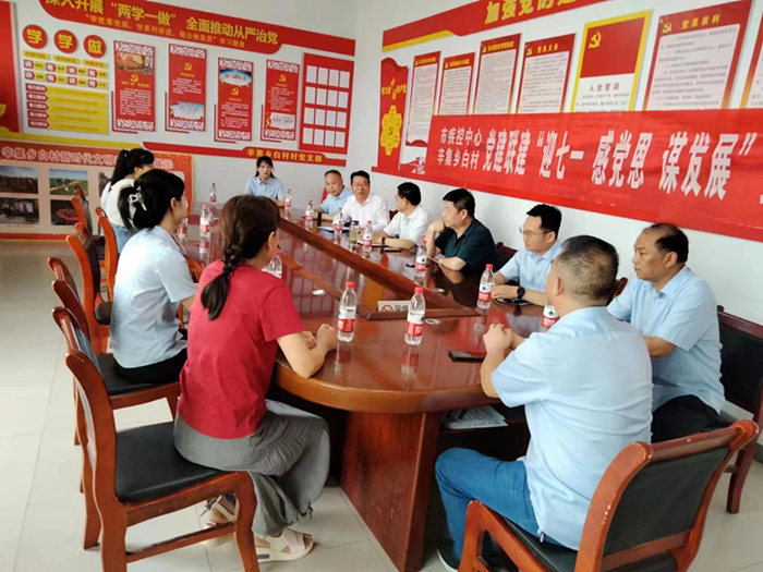 河南党建网讯(李河新)6月29日,在“七一”建党节来临之际,平顶山市疾控中心主任马西平、副主任张明超带领支部书记、优秀党员代表来到鲁山辛集乡白村,与村党支部共同举办“党建联建聚合力,支部同心庆七一”主题党日活动。
