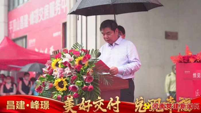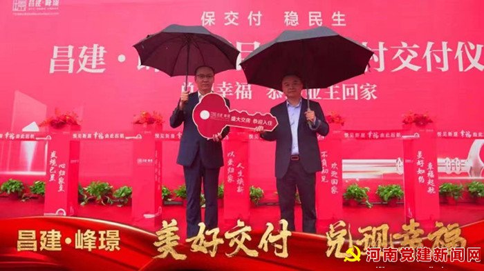 河南党建网讯(李万全刘景标)8月28日上午,“保交付、稳民生”昌建峰璟项目&马庄村民入住新居楼房钥匙交付仪式在昌建峰璟售楼部门前广场举行。昌建控股平顶山城市公司总经理赵辉把象征着“幸福和团圆”的新房钥匙交到了业主代表手中,赢得在场业主的阵阵掌声。