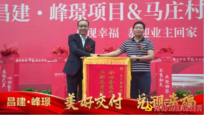 昌建控股平顶山城市公司总经理赵辉在交付现场向昌建峰璟项目给予大力支持的马庄街道办事处赠送了锦旗以表示感谢。他指出,昌建峰璟作为昌建控股进入平顶山的首个项目工程,开工以来备受各级领导、单位关注,本次如期交付楼房,得益于企业强大的品牌实力,更离不开市、区两级政府和市房管局、马庄街道等各级领导的关怀和支持。
