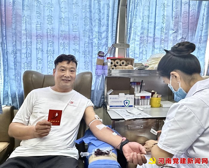 河南党建新闻网讯:“今年是我献血的第14年,已经献血5000毫升了,这次我再献400毫升。”9月12日,在宝丰县前营乡政府院内,机关干部姚胜利一边采血一边说,无偿献血体现的是爱心,弘扬的是正气,传播的是社会正能量,我们党员干部要以身作则,影响带动更多干部群众积极加入到无偿献血者的队伍。