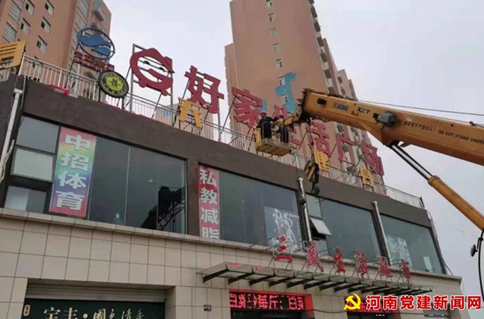 河南党建网讯(李万全通讯员王登辉 )为文明城市创建持续助力,同时消除安全隐患,9月17日,宝丰县城市管理局开展高层建筑违规广告集中整治工作,对辖区内的重点路段和区域高层建筑上未经审批擅自设置及超出审批时限设置的超高、超大、楼顶标识字号等进行了集中拆除。