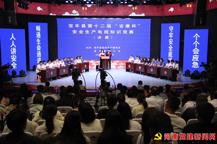 河南党建新闻网讯:近日,宝丰县第十二届“安康杯”安全生产电视知识竞赛(决赛)在该县融媒体中心演播大厅开赛,闹店镇、海星化工等八支代表队进入当天的总决赛。现场气氛热烈,参赛选手们精神饱满,竞相抢答,每次得分都伴随着台下观众热烈的掌声。