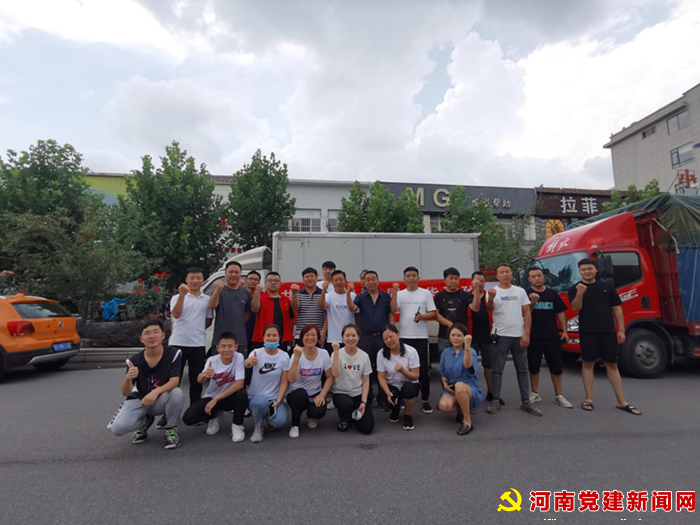 7月的天气异常闷热,志愿者的衣服湿了干、干了又湿,中午的时候还下起了大雨,为了物资不被淋湿,志愿者们在县民政局党组成员石克江的组织下紧急装车,满满3车物资每一件都沾染着志愿者的汗水,承载着宝丰人民的关爱。