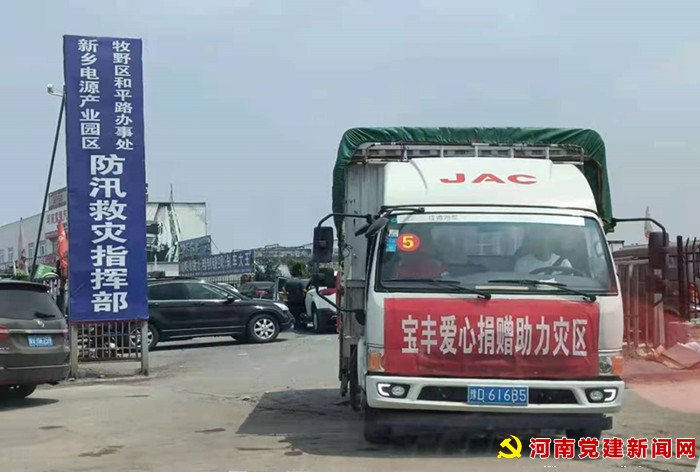 河南党建网讯(李万全杨耀东)洪灾无情,父城有爱。7月30日早上6:00,在宝丰县文化路博诚·和谐园小区鼎盛二手车门前,由三辆厢式货车和六辆爱心救援车组成的救灾物资运输车队集结后,再次驰援新乡,奉献爱心。