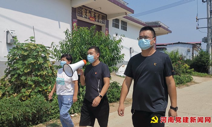 河南党建网讯(李万全通讯员 柳真真 原晋洋)“老少爷们都记好,尽量不要来回跑。大姑娘小媳妇,没事没啥别串门。出门都要戴口罩,人多别去凑热闹……”8月4日上午,宝丰县肖旗乡乔庄村党支部书记手持小喇叭,跟村干部一起走街串巷的喊着自编的疫情防控顺口溜。