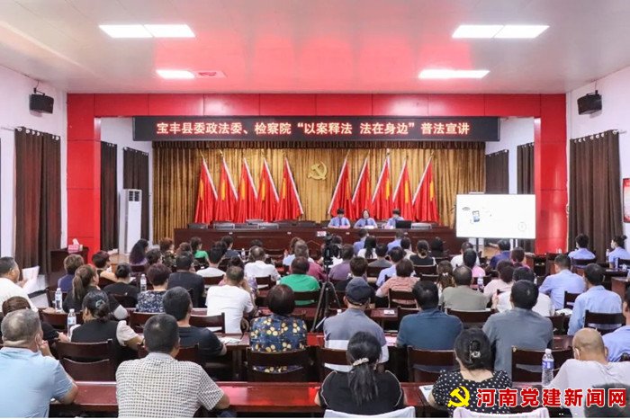 河南党建网讯(李万全通讯员庞涵)8月11日,宝丰县委政法委、宝丰县检察院在李庄乡政府联合举行“以案释法、法在身边”第二场普法宣讲活动,扎实推进“六个专项”暨“我为群众办实事”专项活动走深走实。