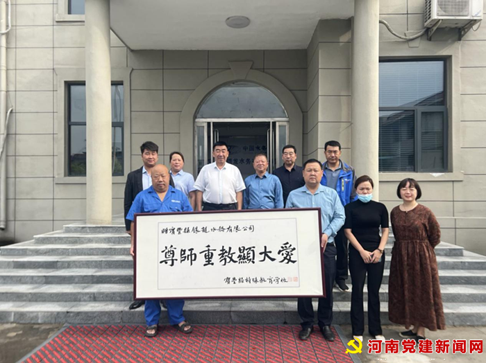 河南党建网讯(李万全 通讯员王鹏飞)9月2日上午,宝丰县特殊教育学校的师生代表将一块“尊师重教显大爱”的牌匾送到了宝丰银龙水务有限公司,向该公司表示最诚挚的谢意。