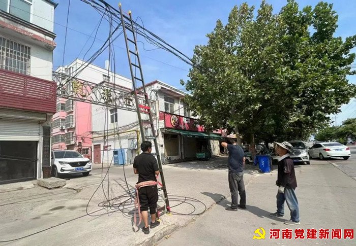 河南党建新闻网讯(李万全通讯员赵晓丹)为深入推进城市精细化管理攻坚,加大对电力线、通信线、有线电视线(以下简称“三线”)及其附属设施布设混乱的治理,助力“创文创卫”工作,连日来,宝丰县城市管理局组织沿线单位、村居和各线缆产权单位在城区内开展“三线”专项整治工作。