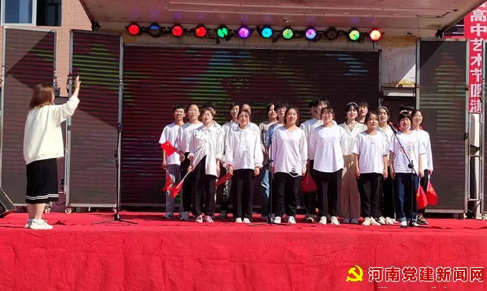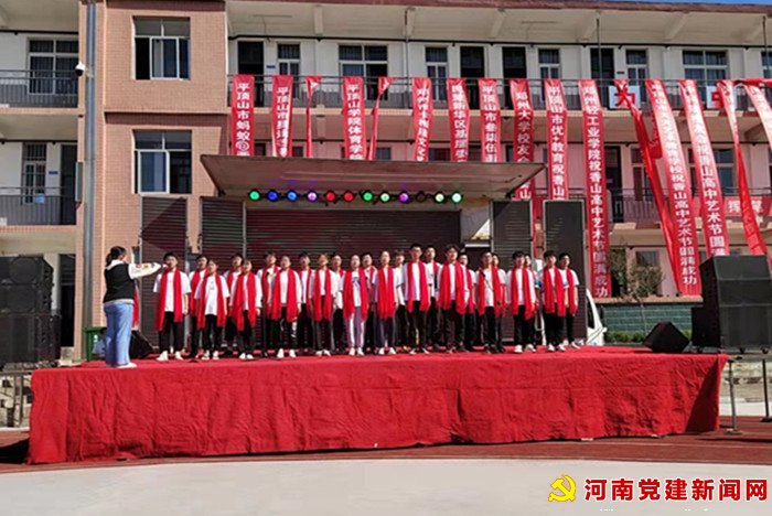 河南党建网讯(李万全)为喜迎中华人民共和国成立72周年,丰富校园文化生活,9月30日上午,平顶山市香山高级中学第一届(红歌会)艺术节隆重举行。百余名师生同台演出,真情演绎,礼赞祖国华诞,颂歌给党听。