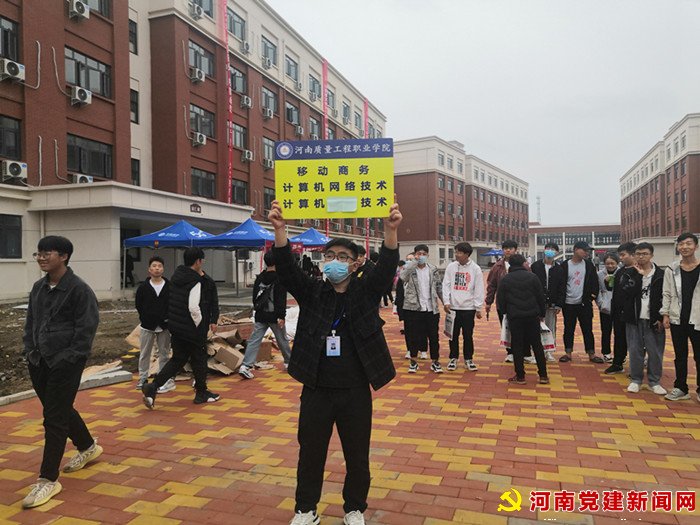 河南党建网讯(李万全通讯员杨国栋 董雨佳) 10月8日下午,几辆满载学生的大巴依次有序地驶入河南质量工程职业学院宝丰校区,在该学院信息工程与室内设计专业上大三、今年21岁的徐炎整理好行李,在老师的帮助下有条不紊地进行登记、领取饭卡,进入宿舍。