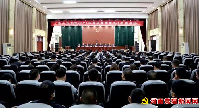 河南党建网讯(李万全 陈运发 通讯员乔子珂 尚艳华)10月18日下午,鲁山县人民法院召开2021年第四季度重点工作推进会,总结前三季度工作,表彰先进,并对第四季度工作进行安排部署。党组书记、院长王宏伟出席会议并讲话,班子成员、全体干警及聘用人员参加会议。会议由党组副书记、副院长林继五主持。