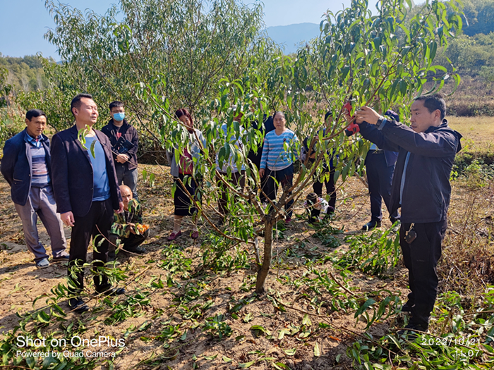 随后周耀伟一行带领大家到店上组现场为群众示范柿树、桃树修剪技术,并解答乡亲们关于果树施肥、嫁接、病虫害防治等方面的有关知识,乡亲们对本次培训效果非常满意。