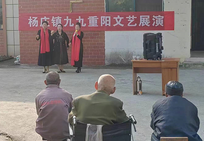 重阳节是我国传统节日,感恩敬老是重阳节活动的重要主题。当日上午,特邀请县梨园春戏曲演出队到杨庄镇中心敬老院为老人们献上精彩的节目,为大家送上节日祝福。