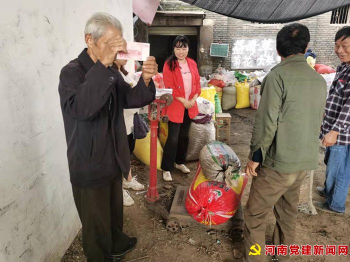 河南党建网讯(李万全 张国强 白东亮)“王天顺橡壳256公斤、橡籽347公斤,卖钱931.8元,张自有橡籽272斤、橡壳456斤,两样共卖518.4元……”这是10月27日早上,记者在舞钢市尹集镇供销社魏爱军中药材林副产品收购部门前看到的营业场景。