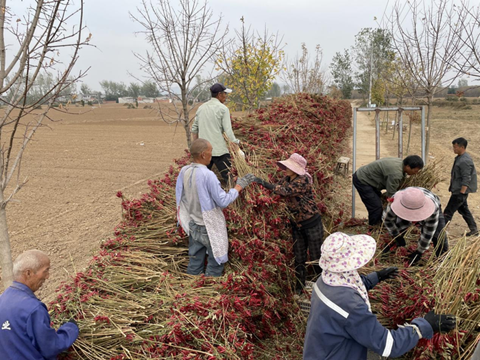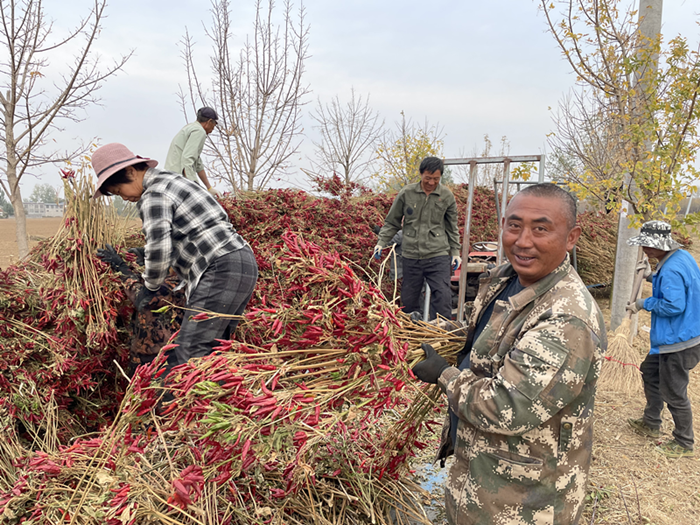 辣椒进入收获期,吸引大量村民前来务工。闪庄村村民孙红卫每年都来辣椒地里干零活,特色种植让周边老百姓30余人在家门口实现了增收致富,带来良好的经济效益。“每到秋收,我就到辣椒地干活,一天能挣70块钱左右,离家近,活儿也不累,已经在这干三四年了!”48岁的孙红卫高兴地说。