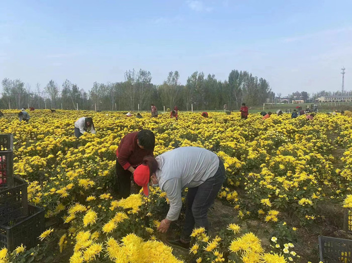 铺地膜、栽苗、除草、打尖、采摘、基地管理等都能吸纳很多村民前来基地务工,金丝皇菊基地为周边无法外出务工的农户提供了家门口务工增收的机会,农户实现了在家门口就业增收。