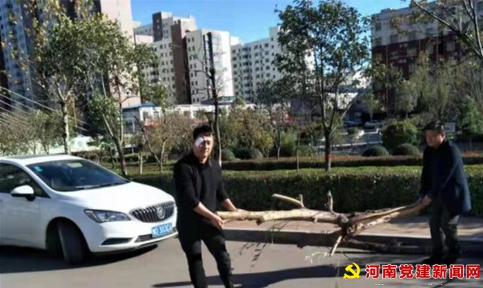 河南党建网讯(李万全通讯员杨铭)“谁叫咱是一名共产党员嘞,有困难必须第一时间上。”友好社区副书记李卫涛捂着被彩钢瓦划伤的眼睛笑着说。他话音一落,又开始清理大风吹落的碎片。