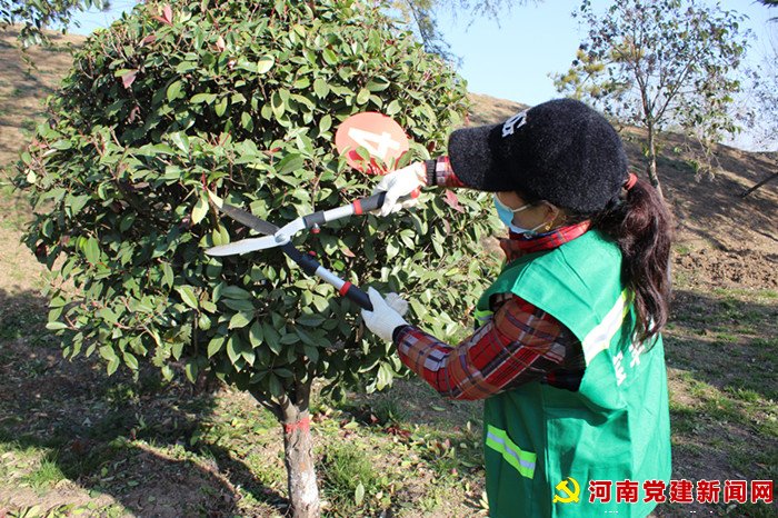 在公园的另一边,随着绿篱剪张合起落的“咔嚓、咔嚓”声,一棵棵女贞球,犹如一件件“艺术品”接受着技艺师们的“精雕细琢”。他们神情专注,动作娴熟,有的针对不同植物特性艺术性修剪,有的挑选不同花语的鲜花,形成寓意美好的主题作品……他们是全县200余名园林养护工人中公认的行业“佼佼者”。