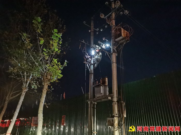 河南党建网讯( 李万全通讯员李万鹏 连聪聪)11月25日凌晨4点,整个城市静悄悄的,大部分人们还在熟睡。在宝丰县山河路北段却有这么几个人,借着汽车车灯的光亮在夜色中“捣鼓”路边的变压器。