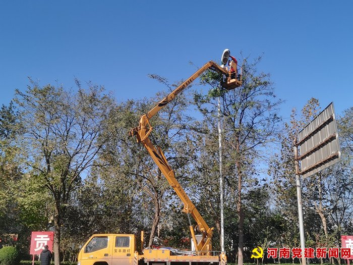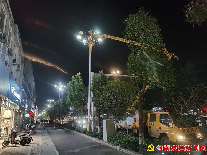 河南宝丰:寒夜忙抢修 只为城市夜空更明亮