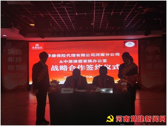 2020年12月2日,华康保代河南分公司、河南鼎德律师事务所在郑州天河大酒店隆重举行战略合作签约仪式。华康保代河南分公司副总经理赵朝阳、代理人渠道负责人张俊峰经理以及中原律师联盟办公室刘敏杰主任、河南鼎德律师事务刘阳主任亲临签约现场,共同见证并进行了签约仪式。