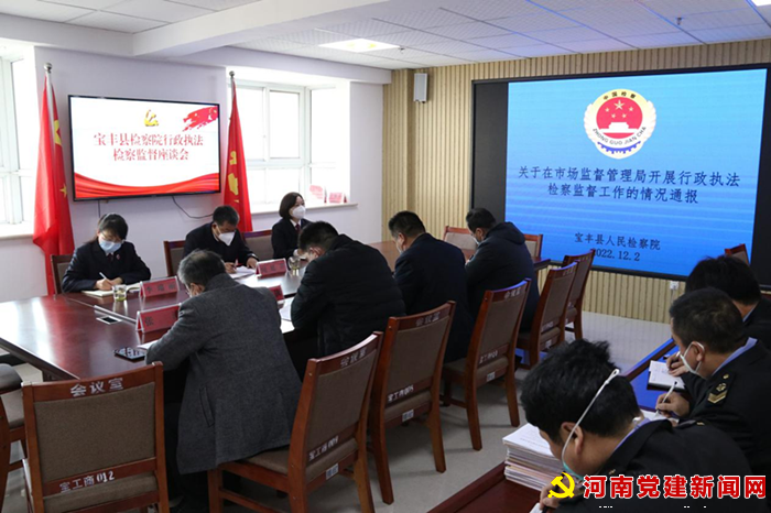 宝丰县院党组书记、检察长闻延菲向宝丰县市场监督管理局公开送达检察建议,并召开宝丰县检察院行政执法检察监督座谈会,闻检提出四点意见:一是依法履行职责、保障合法权益;二是提高思想认识,增强法治意识;三是增强学习本领、严格规范执法;四是完善工作机制,提升执法能力。宝丰县市场监督管理局局长当场表态,要以高度负责的态度,用最短的时间整改到位。一个月内书面回复:已严格按照检察建议要求,全面整改落实,并在今后的执法工作中,加强对执法人员业务培训,建立和完善执法程序规范机制和信息共享机制,对案件进行联审联查,依法严格执法、规范执法、公正执法、文明执法,做到公正、公开、高效、透明。